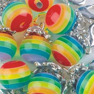 Stunning, glass-look plastic beads are striped with multiple colors. Metal lobster claw clasps. Beads are 1/4" diameter. They make excellent, elegant charms for bracelets.Multicolor Lobster Claw Beads 1/4" (Bag of 12) Specifications